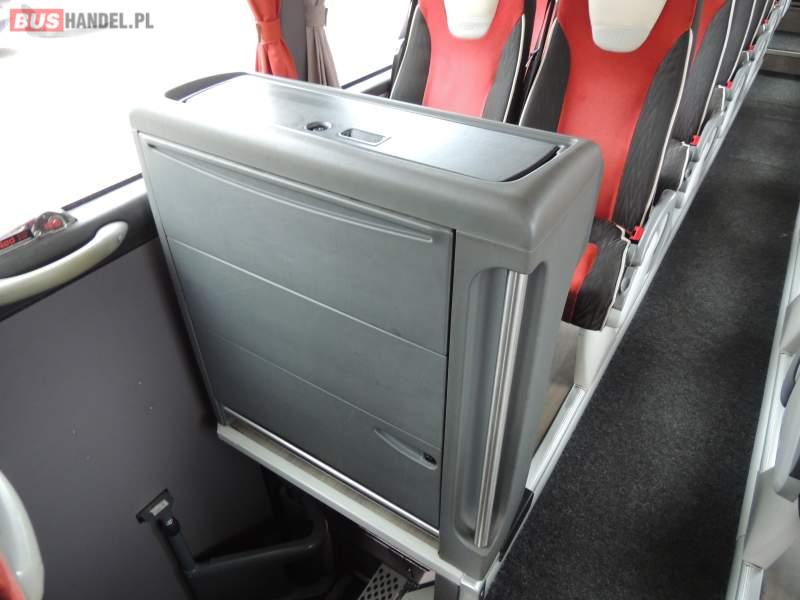 : klimatyzacja, video, WC, lodówka, caffebar, kabina sypialna, oświetlenie indywidualne, nawiewy dyszowe, podnóżki, stoliczki, siateczki, ABS, ASR, tempomat, retarder, CD, radio, fotele odchylane i rozsuwane, rampa dla inwalidów, regulacja wysokości nadwozia, centralny zamek, podwójne szyby boczne, wspomaganie kierownicy, aluminiowe felgi, elektryczne lusterka, ogrzewanie stacjonarne, DVD, ESP