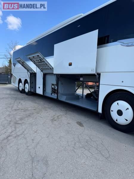 : klimatyzacja, WC, lodówka, kabina sypialna, oświetlenie indywidualne, nawiewy dyszowe, fotele odchylane, stoliczki, siateczki, ABS, ASR, tempomat, retarder, mikrofon, radio, fotele odchylane i rozsuwane, sejf, regulacja wysokości nadwozia, centralny zamek, podwójne szyby boczne, wspomaganie kierownicy, elektryczne lusterka, ogrzewanie stacjonarne, DVD, ESP
