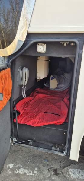 : WC, lodówka, kabina sypialna, fotele odchylane, oświetlenie indywidualne, nawiewy dyszowe, siateczki, ABS, ASR, tempomat, retarder, telefon, CD, podnóżki, stoliczki, mikrofon, klimatyzacja, radio, regulacja wysokości nadwozia, podwójne szyby boczne, wspomaganie kierownicy, elektryczne lusterka, DVD, ogrzewanie stacjonarne, hak holowniczy, ESP