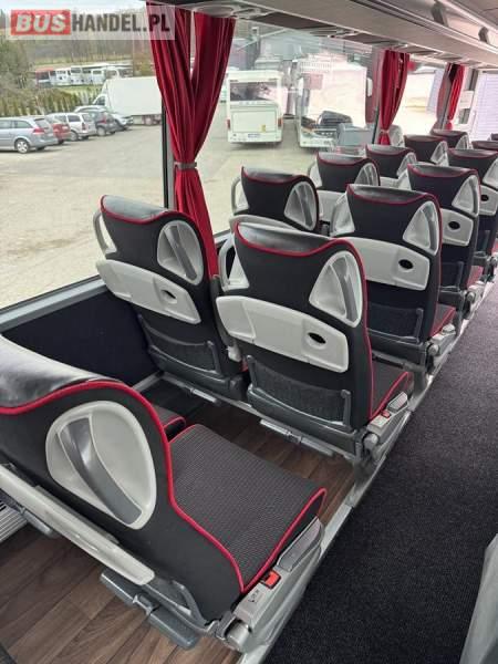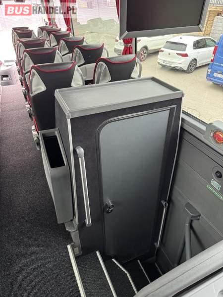 : WC, lodówka, kabina sypialna, fotele odchylane, oświetlenie indywidualne, nawiewy dyszowe, siateczki, ABS, ASR, tempomat, retarder, CD, podnóżki, stoliczki, mikrofon, klimatyzacja, radio, regulacja wysokości nadwozia, centralny zamek, podwójne szyby boczne, wspomaganie kierownicy, elektryczne lusterka, aluminiowe felgi, DVD, ogrzewanie stacjonarne, ESP
