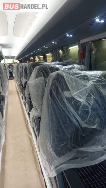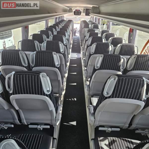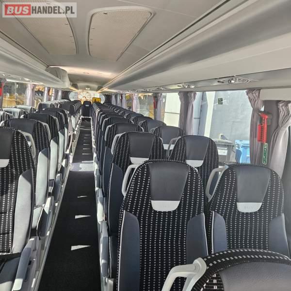 : video, WC, lodówka, kabina sypialna, oświetlenie indywidualne, nawiewy dyszowe, ABS, ASR, tempomat, retarder, nawigacja, CD, podnóżki, mikrofon, klimatyzacja, radio, sejf, regulacja wysokości nadwozia, centralny zamek, podwójne szyby boczne, wspomaganie kierownicy, elektryczne lusterka, aluminiowe felgi, fotele odchylane i rozsuwane, DVD, ogrzewanie stacjonarne, ESP
