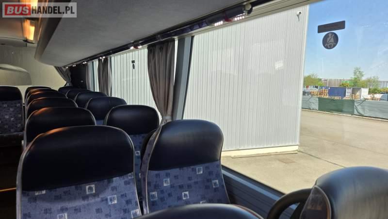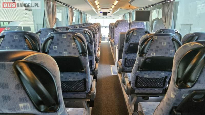 : WC, lodówka, kabina sypialna, fotele odchylane, oświetlenie indywidualne, nawiewy dyszowe, siateczki, ABS, ASR, tempomat, retarder, podnóżki, stoliczki, mikrofon, klimatyzacja, radio, regulacja wysokości nadwozia, centralny zamek, podwójne szyby boczne, wspomaganie kierownicy, elektryczne lusterka, fotele odchylane i rozsuwane, ogrzewanie stacjonarne, ESP