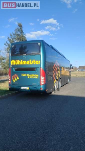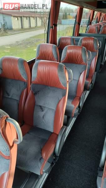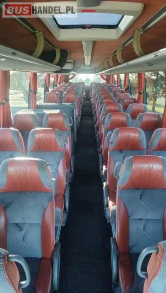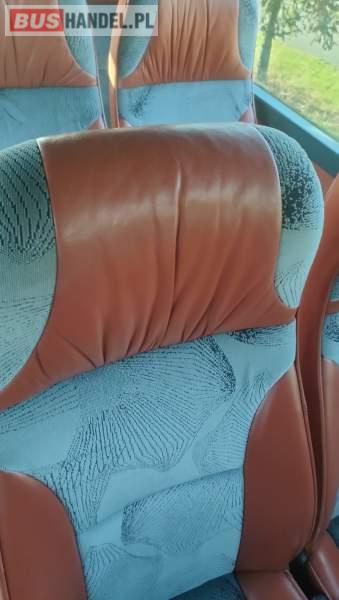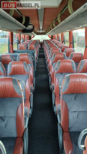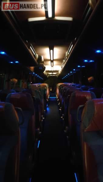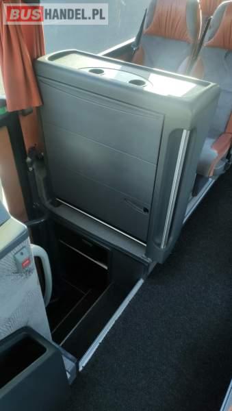 : video, WC, lodówka, caffebar, kabina sypialna, fotele odchylane, oświetlenie indywidualne, nawiewy dyszowe, siateczki, ABS, ASR, tempomat, retarder, nawigacja, CD, podnóżki, stoliczki, mikrofon, klimatyzacja, radio, sejf, regulacja wysokości nadwozia, centralny zamek, podwójne szyby boczne, wspomaganie kierownicy, elektryczne lusterka, fotele odchylane i rozsuwane, DVD, ogrzewanie stacjonarne, hak holowniczy, ESP