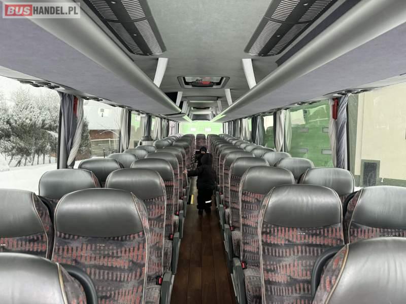 : video, WC, lodówka, kabina sypialna, oświetlenie indywidualne, nawiewy dyszowe, siateczki, ABS, ASR, tempomat, retarder, CD, podnóżki, stoliczki, mikrofon, klimatyzacja, radio, regulacja wysokości nadwozia, centralny zamek, podwójne szyby boczne, wspomaganie kierownicy, elektryczne lusterka, fotele odchylane i rozsuwane, DVD, ogrzewanie stacjonarne, ESP
