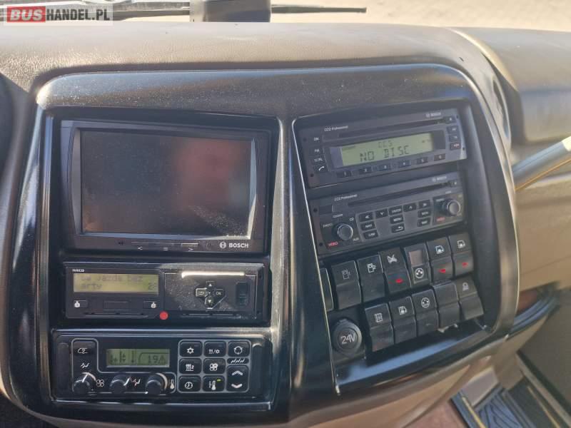 : video, WC, lodówka, caffebar, kabina sypialna, oświetlenie indywidualne, siateczki, ABS, ASR, tempomat, retarder, telefon, CD, podnóżki, stoliczki, mikrofon, klimatyzacja, radio, rampa dla inwalidów, regulacja wysokości nadwozia, centralny zamek, podwójne szyby boczne, wspomaganie kierownicy, elektryczne lusterka, fotele odchylane i rozsuwane, DVD, ogrzewanie stacjonarne, ESP